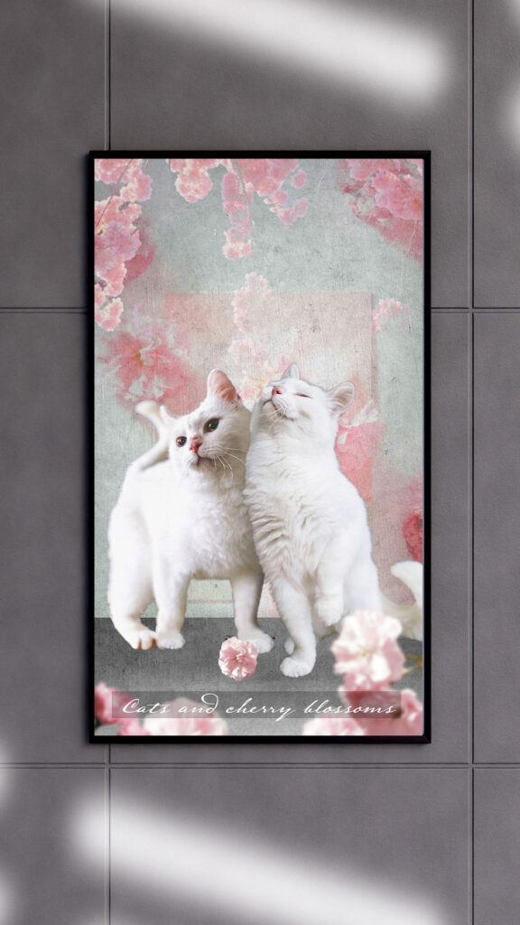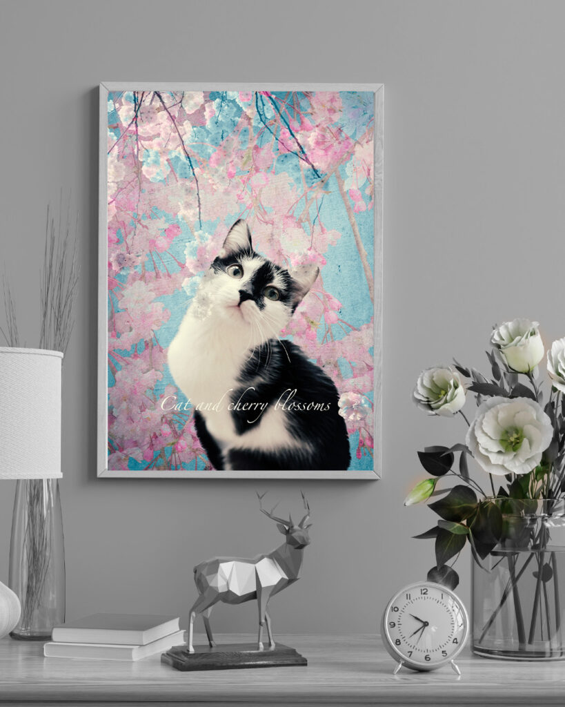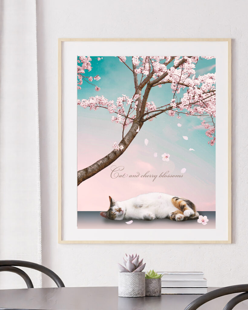 猫と桜のコラージュ作品例|インテリアとしての飾り方