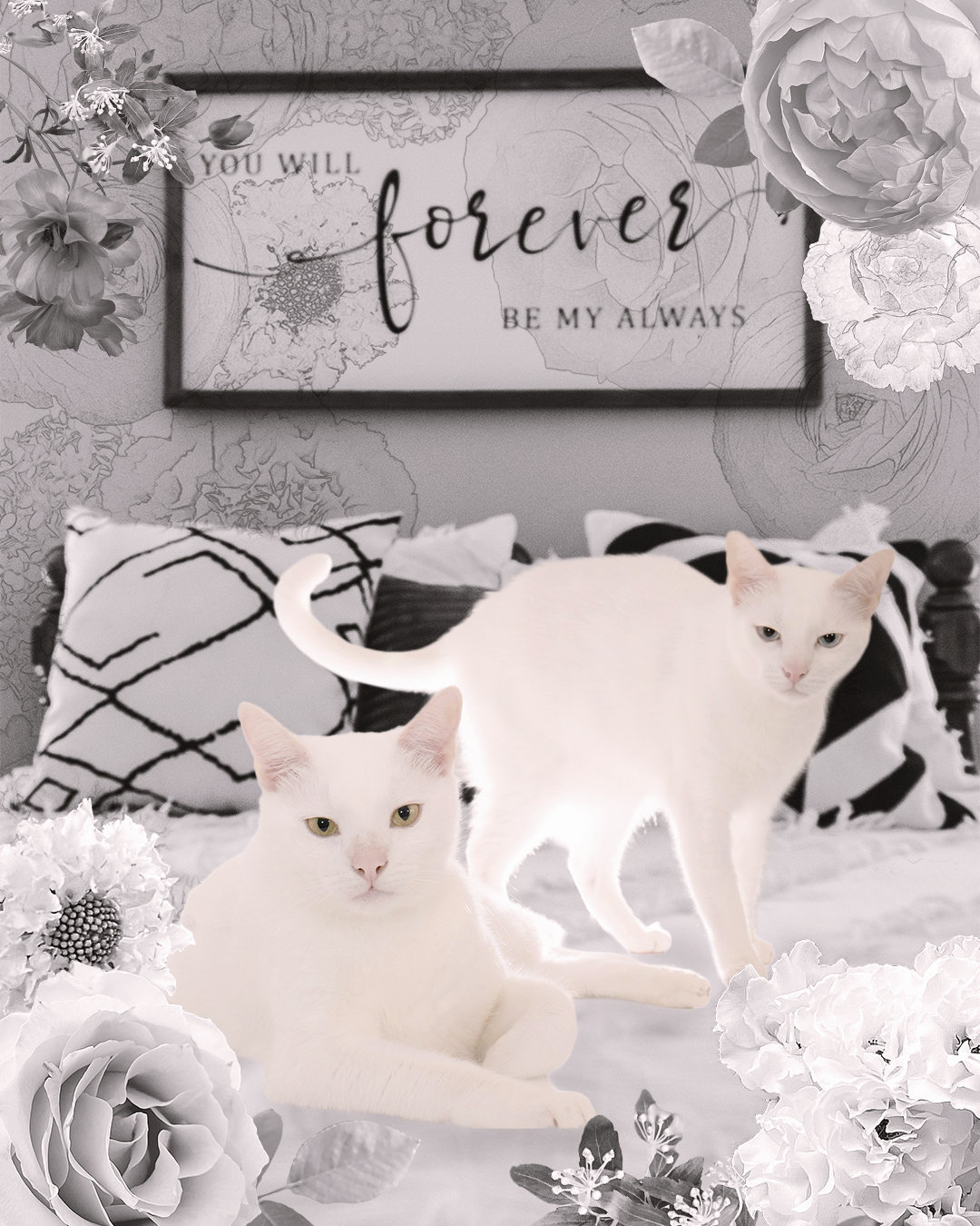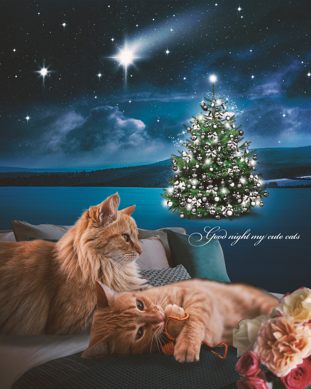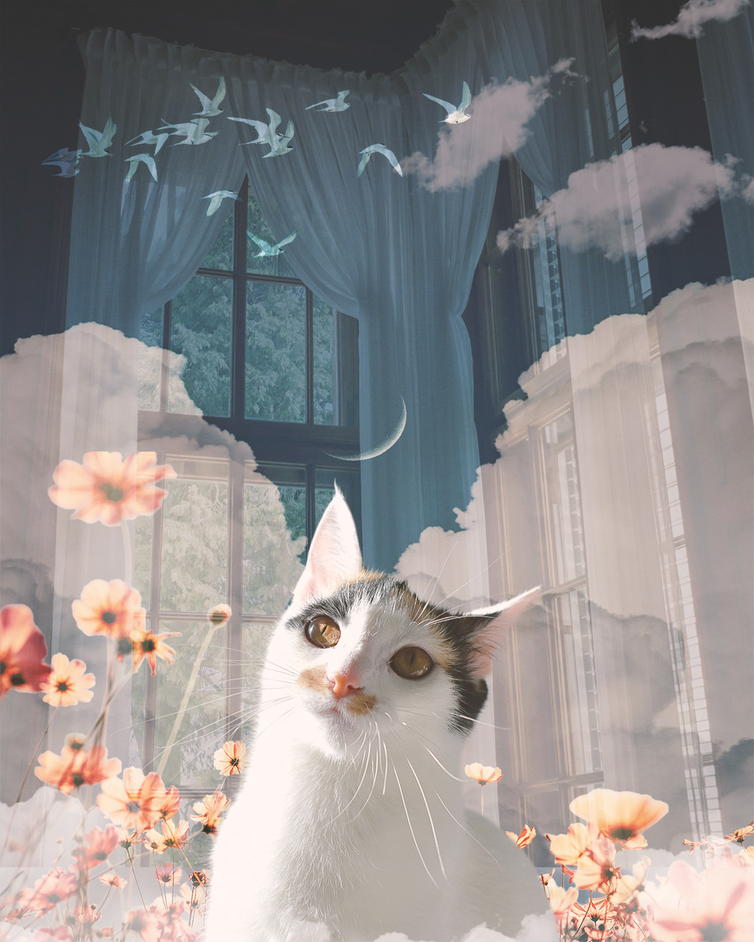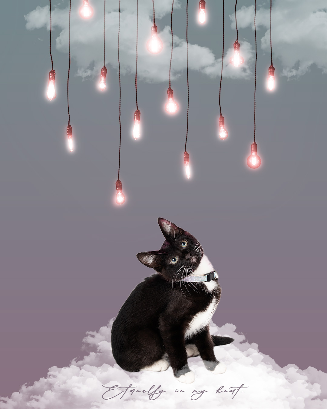 愛らしい猫達を、雲や花とアレンジして美しいアート作品にしています インテリアとして部屋に飾りながらその姿を偲べるように