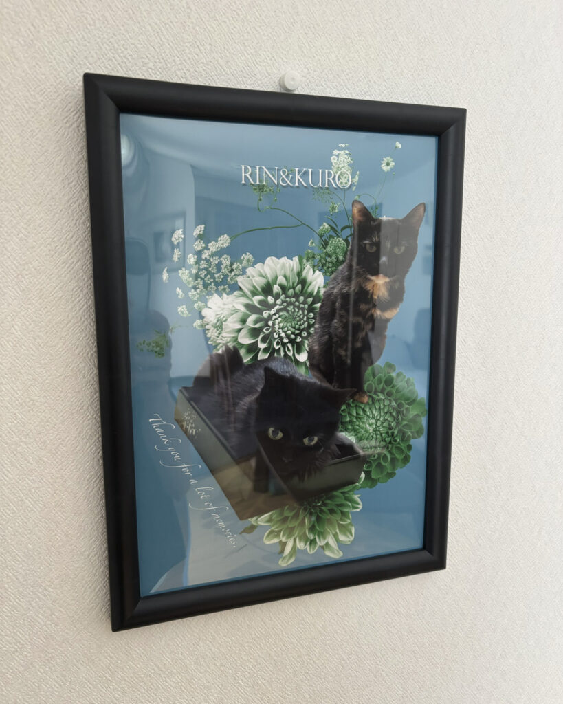 我が家でともに暮らした可愛い猫たちリンとクロを、おまかせで作ってもらいました。思っていた以上に紙質が良くて、いい感じです。