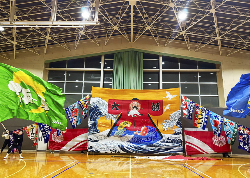 力強い踊りの背景で、自分の描いたデザインが風になびくのを見た時は本当に胸が熱くなりました。